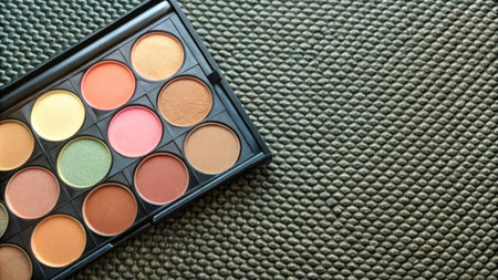Colorful Eyeshadow palette, background pattern, wallpaper. Cosmetic powder with glitter glow