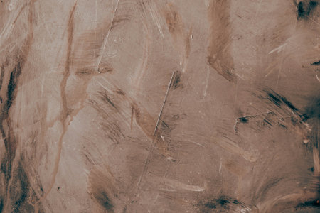 Close-up showing grungy distressed concrete wall surface with deep scratches and dark smudges creating a weathered industrial texture background keywords: grunge,...