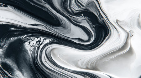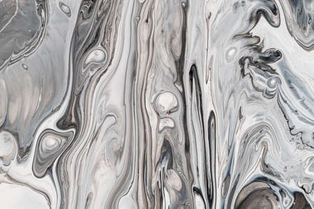 Close Up Black and White Colors Fluid Pouring Abstract Art Acrylic Painting Texture Background