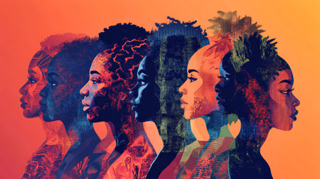 A dynamic collage showcases African American individuals of various ages and backgrounds, highlighting their beauty and strength against a striking red backdrop.