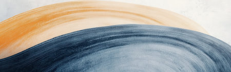 Curved strokes of muted indigo and soft orange intersect, creating a soothing abstract landscape that evokes a sense of calm and tranquility in art.