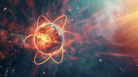 A vibrant display of an atoms energy, radiating brightly against a cosmic backdrop.