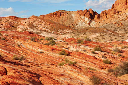 Scenic landscape with striped colorful sedimentary rocks in Valley of the Fire national park in Nevada, USA