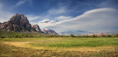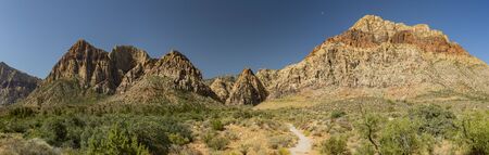Panoramic of desert Landscape of Red Rock Canyon National Conservation recreation Area in Las Vegas Nevada United States. USA landmark national park nature landscape travel and tourism concept.