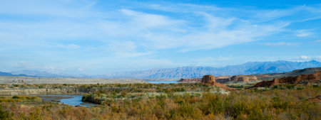 Low water in Lake Mead in autumn. View from the Arizona side. USA