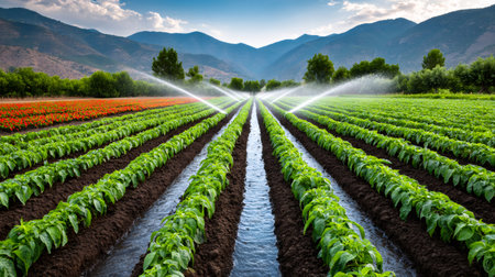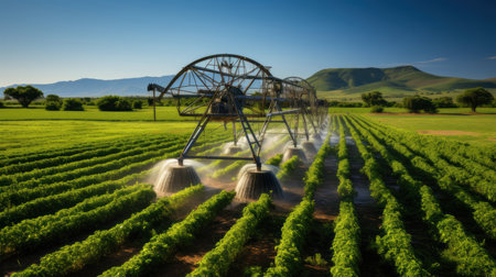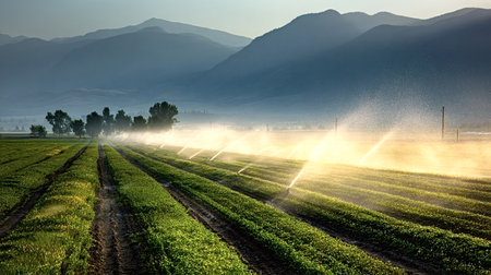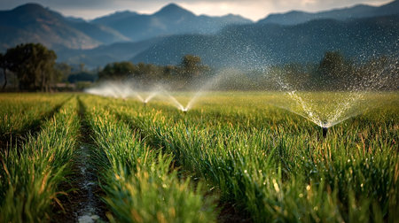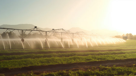 Automated irrigation systems in action, showcasing water conservation in modern agriculture