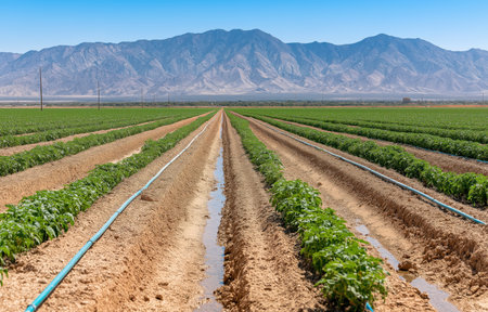 Efficient Water Management in Agriculture through Modern Irrigation Systems. Concept Smart Irrigation, Precision Farming, Drip Irrigation, Water-saving Technologies, Sustainable Agriculture
