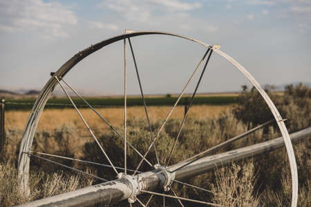 Wheel of Irrigation System Sitting in Dry Brush in Nevada desert