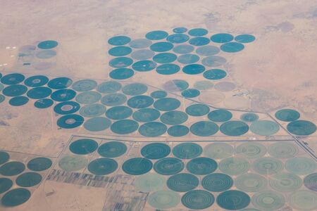 Farming sprinklers waterlines in field for irrigation and watering of crops Pivots Pivot lines