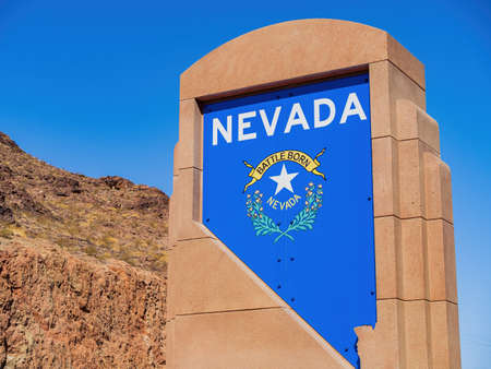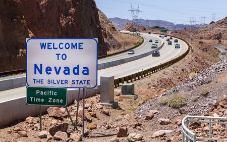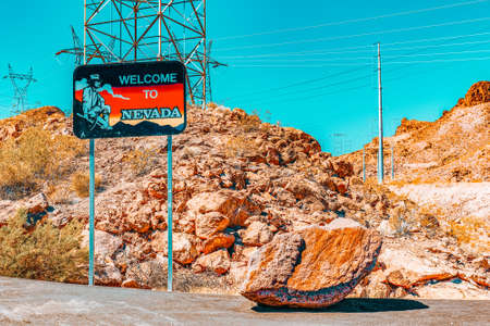 Welcome to Nevada Sign on the border with Arizona. In Laughlin, Clark County, Nevada USA