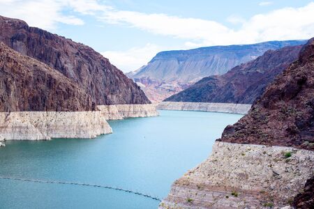 Hoover Dam, USA - May 25 2018: Hoover Dam and lake, border of Arizona and Nevada, United States of America, North America