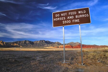 Do not feed wild horses sign in beautiful desert landscape