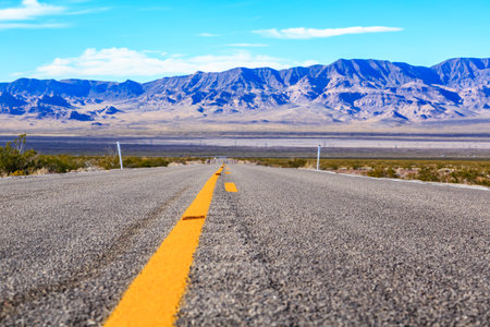 Straight and empty road with yellow lines Nevada, US