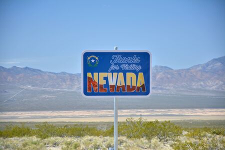Welcome to Nevada state sign on highway upon entering state border of Nevada