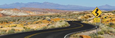Panorama of Road at Valley of Fire State Park in a sunny day, Nevada, USA