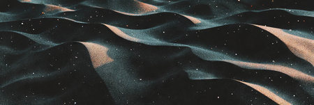 Texture of black sand with basalt fragments under soft light at a volcanic beach