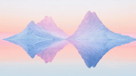 A tranquil scene featuring majestic mountains reflected in still waters. The pastel colors of sunrise create a serene atmosphere, perfect for those who appreciate nature's beauty.