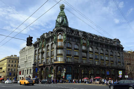 Saint Petersburg, Russia, July 23, 2015. View of the Singer house from Nevsky Prospekt on a bright Sunny day. Today, the building houses the House of Books. Documentary Editorial