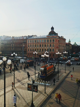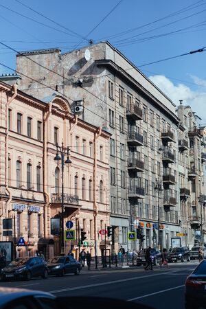 St.PETERSBURG, RUSSIA - MAR 21, 2019: On one of the streets in the city center. St. Petersburg is a cultural center of world importance, there are more than 200 museums and their branches.