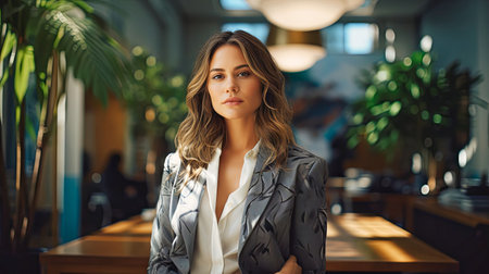 business and people concept - Modern business woman in the office with copy space