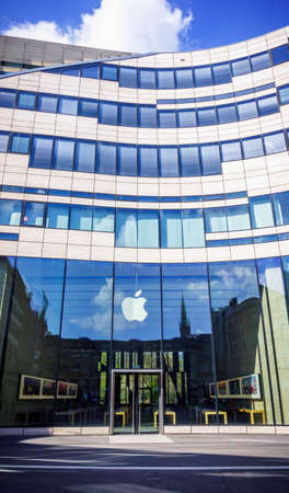 DUSSELDORF, GERMANY - APRIL 02, 2017: Apple store entrance. Apple is the multinational technology company headquartered in Cupertino