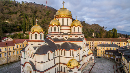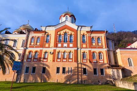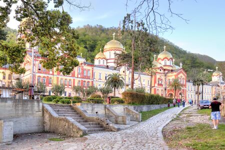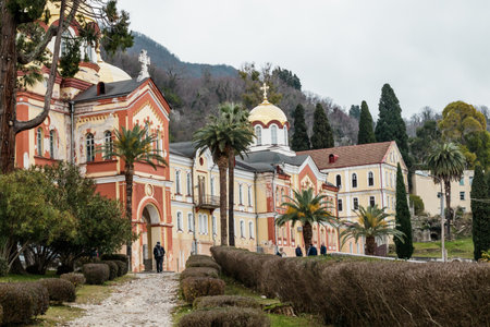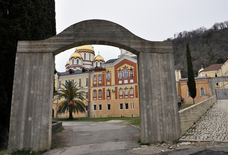 Novy Afon, Abkhazia, Georgia - February 24, 2018: Landscape with views of the new Athos Christian monastery.