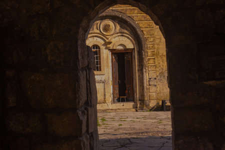 BACHKOVO MONASTERY, BULGARIA - FEBRUARY 4, 2019: Medieval Buildings in Bachkovo Monastery Dormition of the Mother of God, Bulgaria