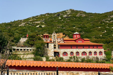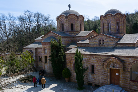 Byzantine Orthodox Monastery of Timios Prodromos at Akritochori near Serres and Lake Kerkini, Macedonia Greece, located on Menikio Mountain, tourist destination.
