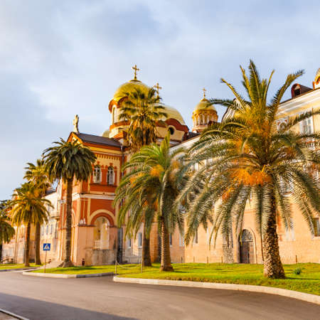 New Athos monastery of St. Simon the Canaanite monastery in the sunshine. New Athos, Abkhazia.