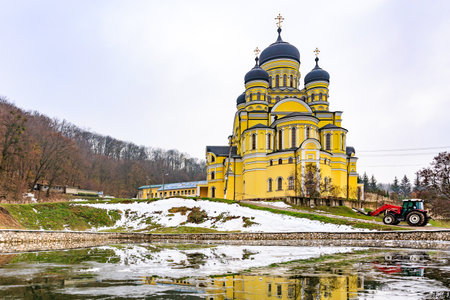 Hincu Monastery in the Republic of Moldova. Background with selective focus and copy space for text