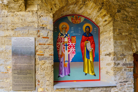 Bachkovo, Bulgaria - September 26, 2023: Memorials to church leader saving Jews in WWII, in the Bachkovo Monastery of the Dormition of the Theotokos, southern Bulgaria