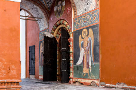 Moscow region, the village of Ozeretskoye, Russia, January 22, 2015: Church of St. Nicholas the Wonderworker in Ozeretsky. Wall murals of the main entrance to the church.