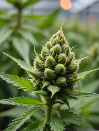 close-up of cannabis flower, with intricate details visible, created with generative ai