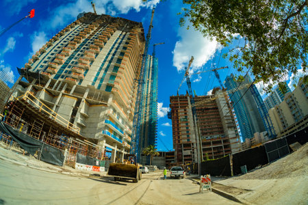 Miami, FL USA - December 12, 2016: New hi rise condominium building construction project nearing completion in the popular midtown area.