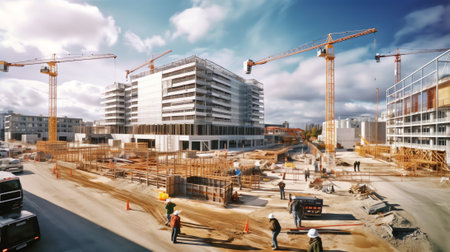 Active construction site background showing buildings in progress. Great for real estate, architectural development, and builder content.