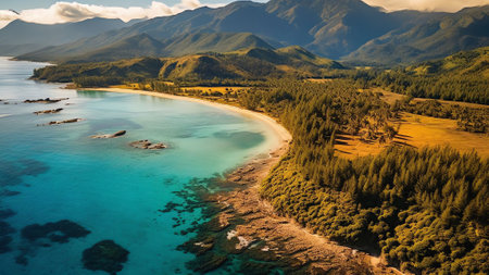 Generative AI : Aerial view of Dunns River beach along the coastline in Saint Ann Jamaica