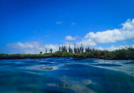 beautiful natural swimming pool of Oro Bay, Isle of Pines, New Caledonia. aquamarine translucent water. Panoramic format