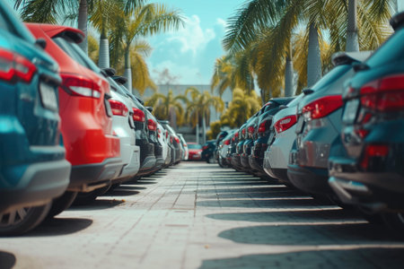 Cars for sale, vehicle or lot for dealership salon in parking or line up. Colorful, model or display