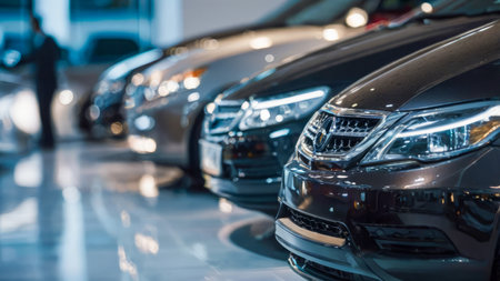 Assortment of sleek, state of the art cars showcased in a flawless row at the showroom
