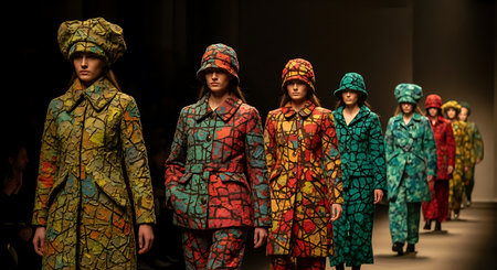 Create a fashion-forward scene featuring people of all genders, ethnicities, and styles. Imagine a runway where models proudly showcase diverse clothing designs, breaking stereotypes and embracing individuality.