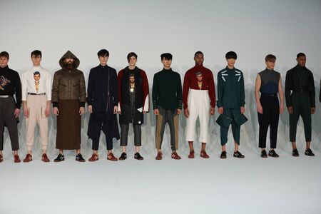 NEW YORK, NY - FEBRUARY 02: Models pose at the Wood House presentation during New York Fashion Week Men's Fall/Winter 2016 on February 2, 2016 in NYC.