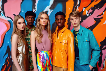 Stylish group of trendy teens showcasing vibrant 80s-inspired fashion.