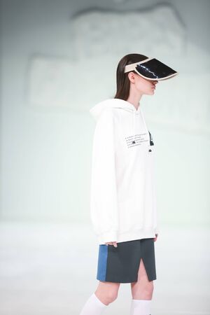 ZAGREB, CROATIA - MARCH 22, 2018 : Fashion model wearing clothes for spring - summer, designed by Anthony Avangard on the Bipa Fashion.hr fashion show in Zagreb, Croatia.