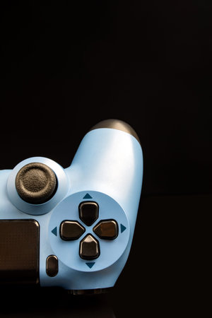 Saint-Petersburg-18 August, 2020: Joystick for game console on black background. Game console with a joystick. Home video game console.