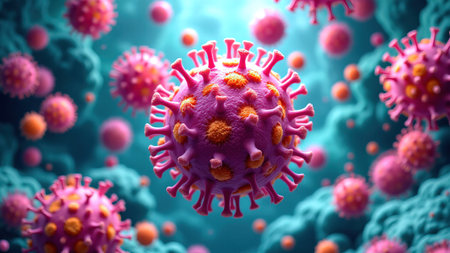 Microscopic view of virus cells. 3D medical illustration