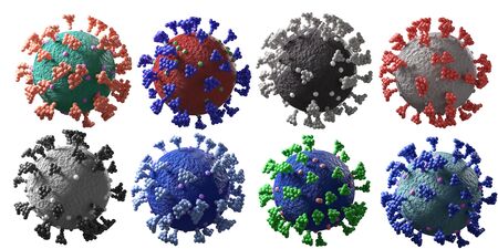 Coronavirus covid-19 under microscope rendering with various colors, isolated on white
