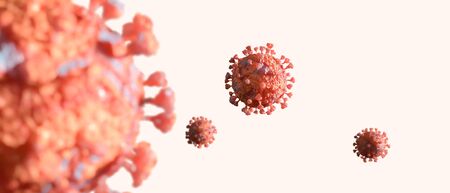 close-up coronavirus type covid-19, h1n1, bird flu or swine flu background. 3d rendering of representation of virus as microbiological microscopic background. Red white gradient color