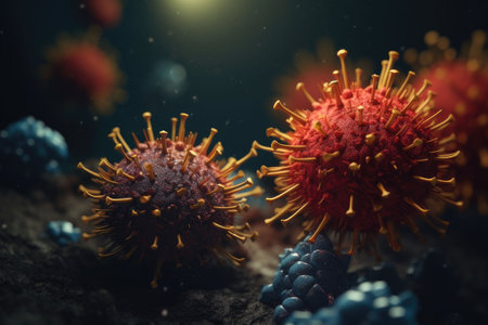 3d render of pathogenic virus organism or bacteria infecting and causing disease. Close up from microscope of coronavirus. 3d rendering