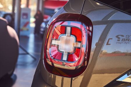 Vinnitsa, Ukraine - April 02, 2019. Renault Duster - new model car presentation in showroom - rear headlight