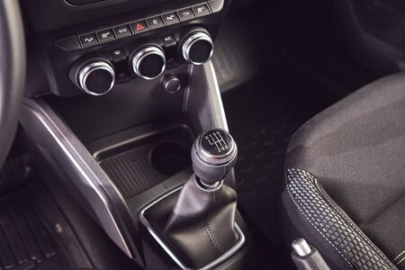 Close-up view of the automatic gearbox lever. Interior car, automatic transmission gearshift stick